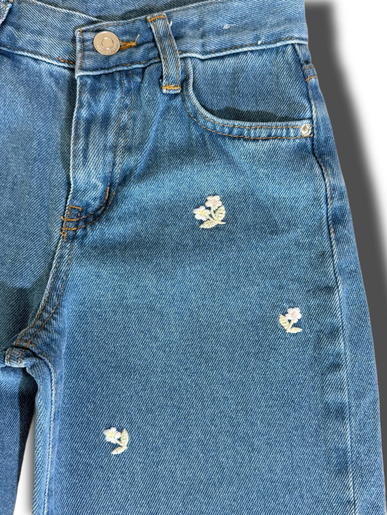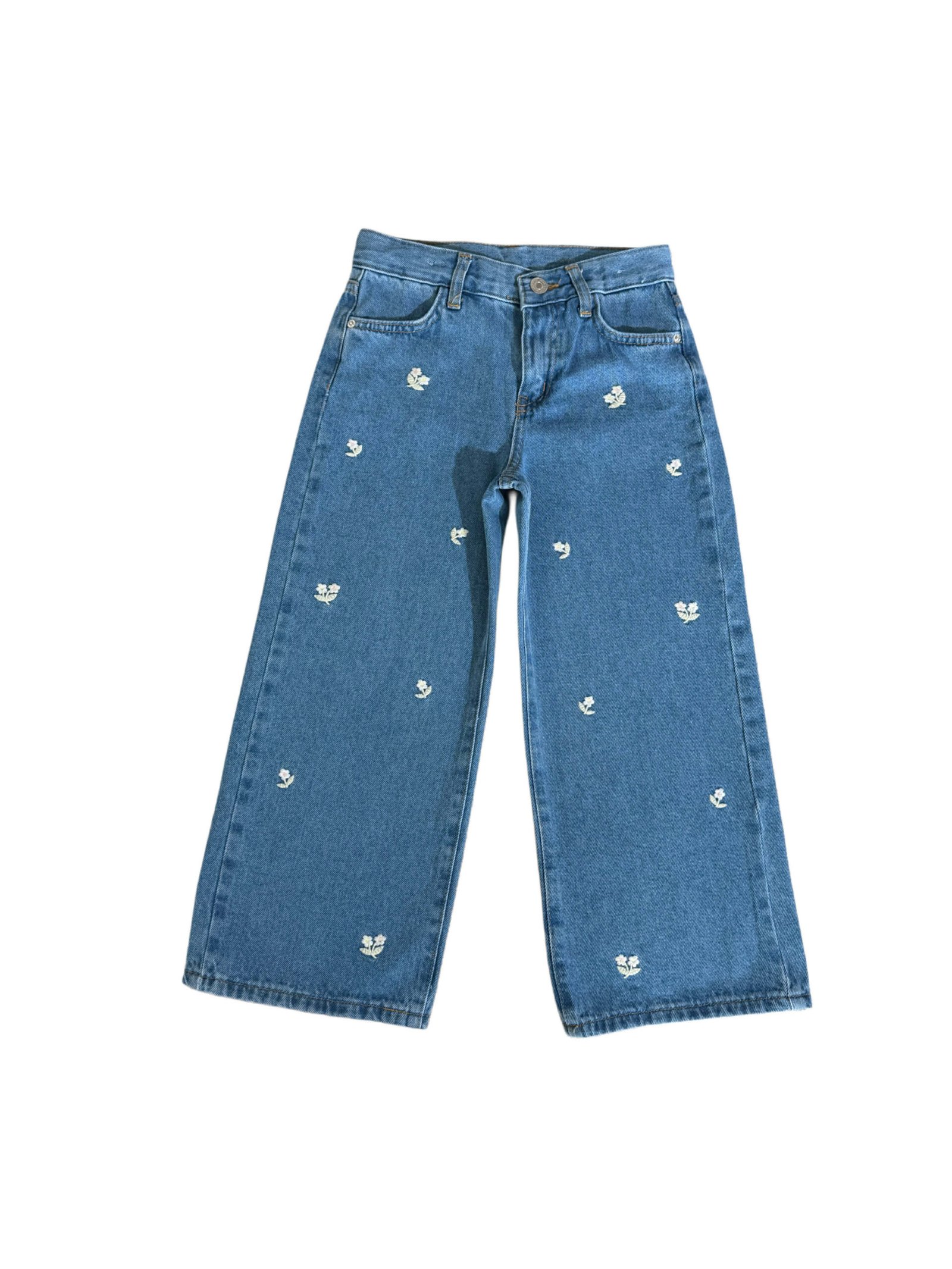 Plataus silueto džinsai su subtiliais gėlių siuvinėjimais, suteikiančiais modeliui išskirtinio žavesio. Stilingas ir lengvai derinamas modelis kasdieniams bei tvarkingesniems deriniams.