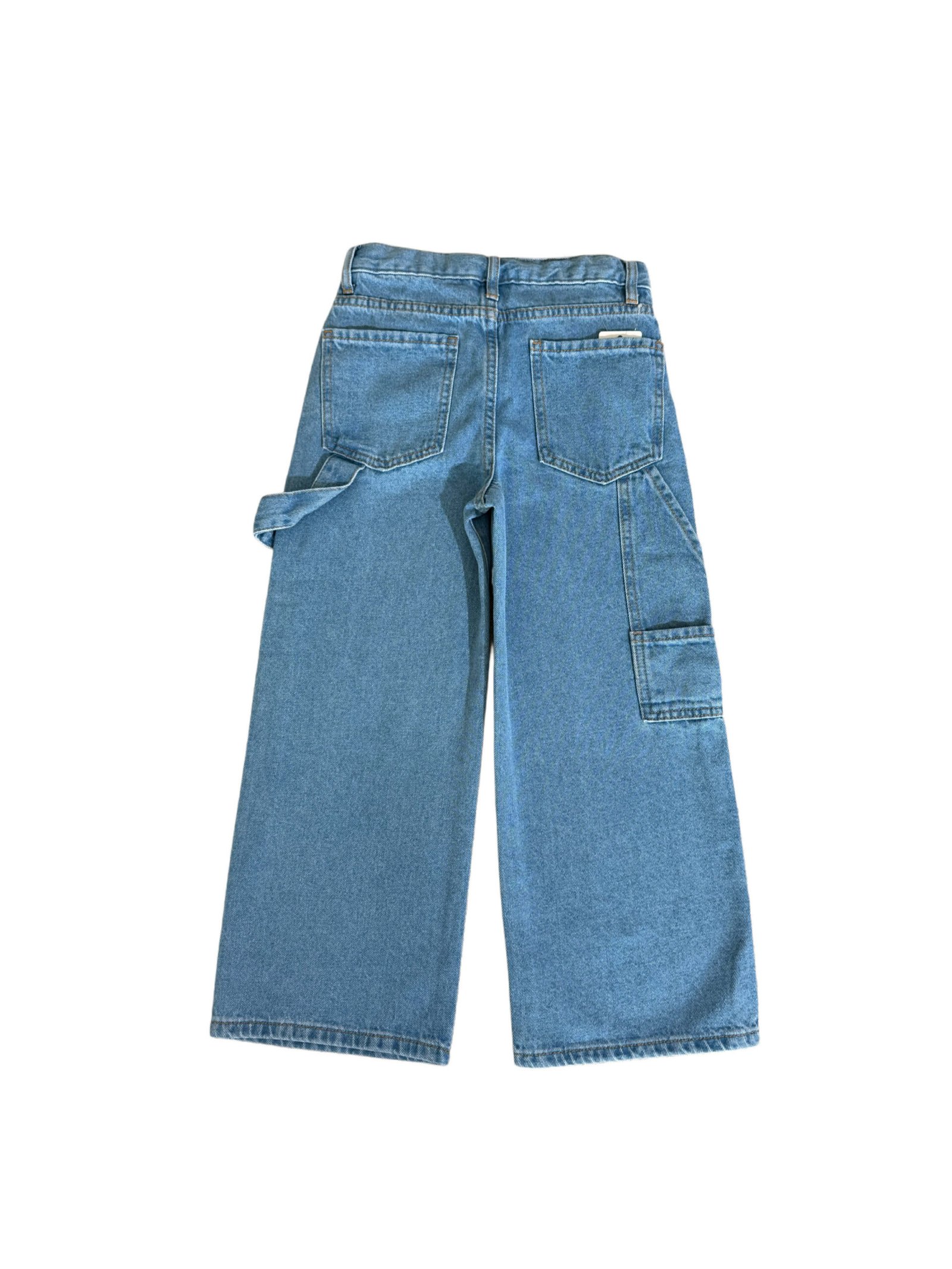 Modernūs plačaus silueto džinsai su funkcionaliomis šoninėmis kišenėmis. Išskirtinis modelis lengvai derinamas kasdieniams miesto stiliaus deriniams. Tinka mergaitėms ir berniukams.