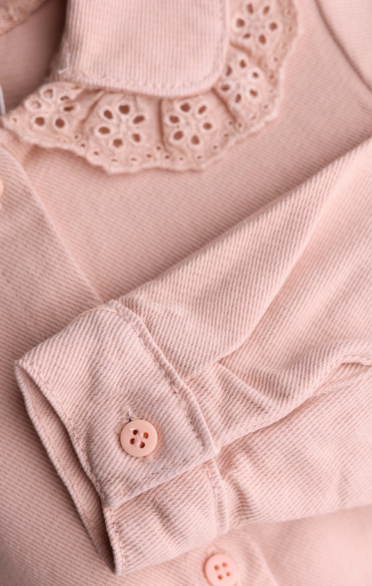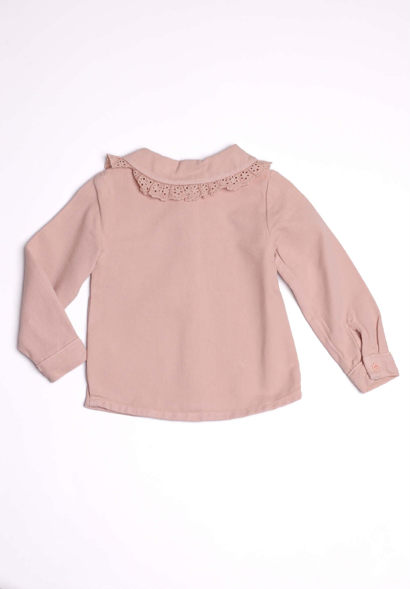 Stilingi vaikiški džinsiniai marškiniai su sagomis ir klasikinio kirpimo apykakle. Puikiai dera tiek prie kelnių, tiek prie sijonų – tinka kasdieniams ir tvarkingesniems deriniams.
