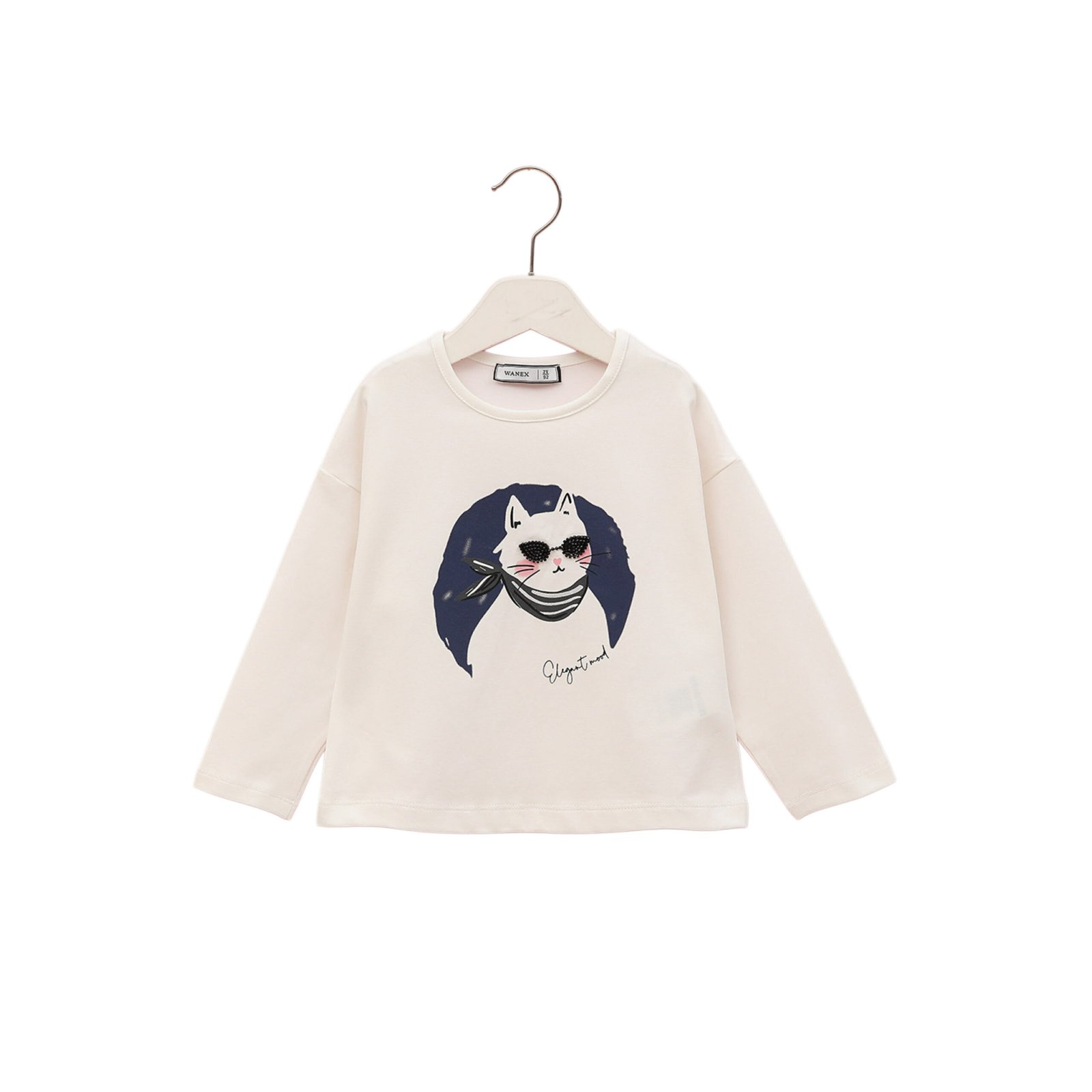 Švelni ir patogi palaidinė mergaitėms su žaismingu katės piešiniu priekyje. Lengvai derinama kasdieniams deriniams ir suteikia išskirtinio žavesio.